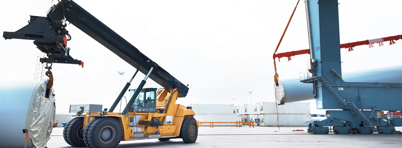 A worker driving a vehicle up the ramp